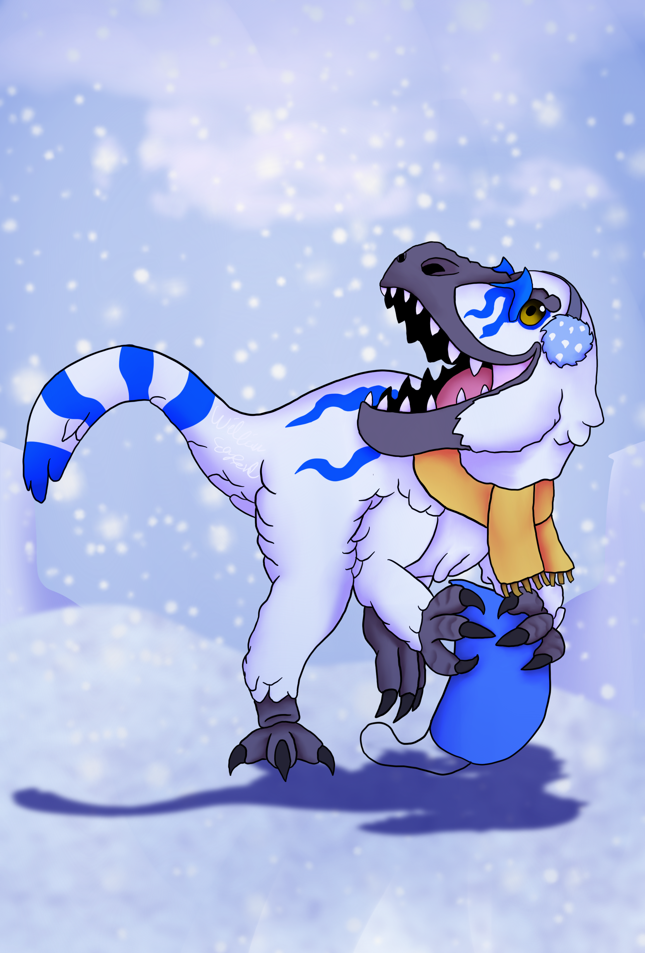 The grey dinosaurs in question may look incomplete in comparison to the other entries here, but they are purposefully designed in this manner to be installed as silhouettes on windows, serving in an advertising manner. All artwork presented here is drawn digitally in Procreate.